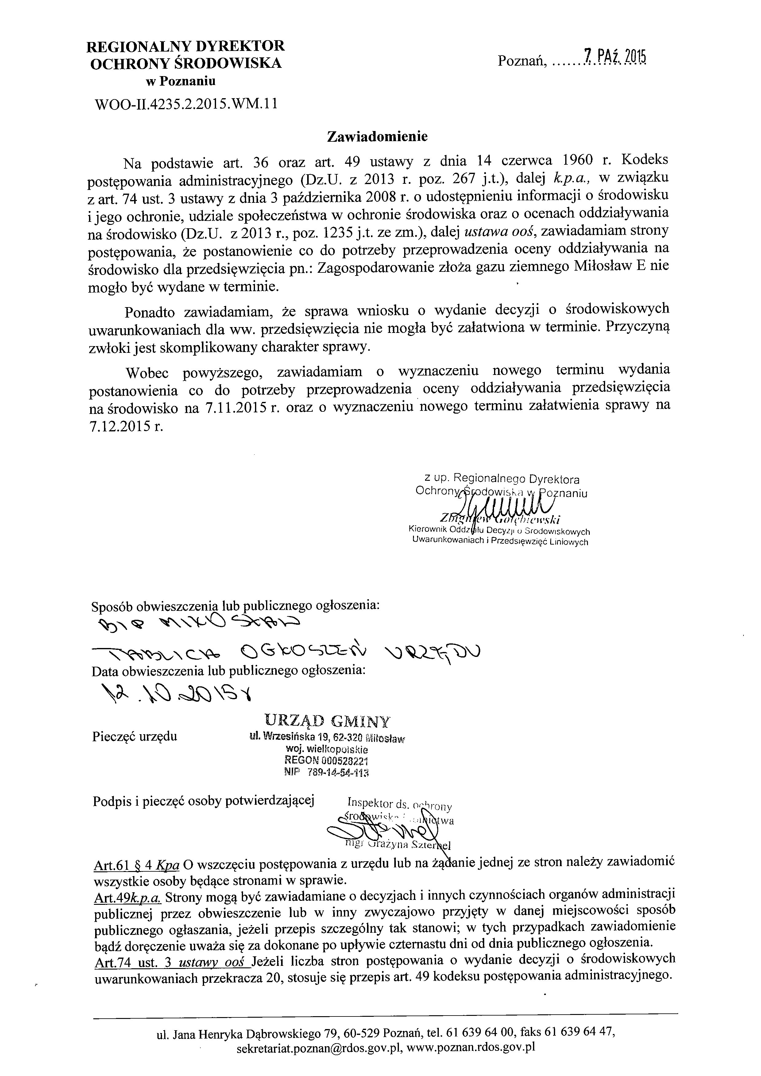 Strona główna > Tablica ogłoszeń > Obwieszczenia / Komunikaty > Obwieszczenie -RDOŚ