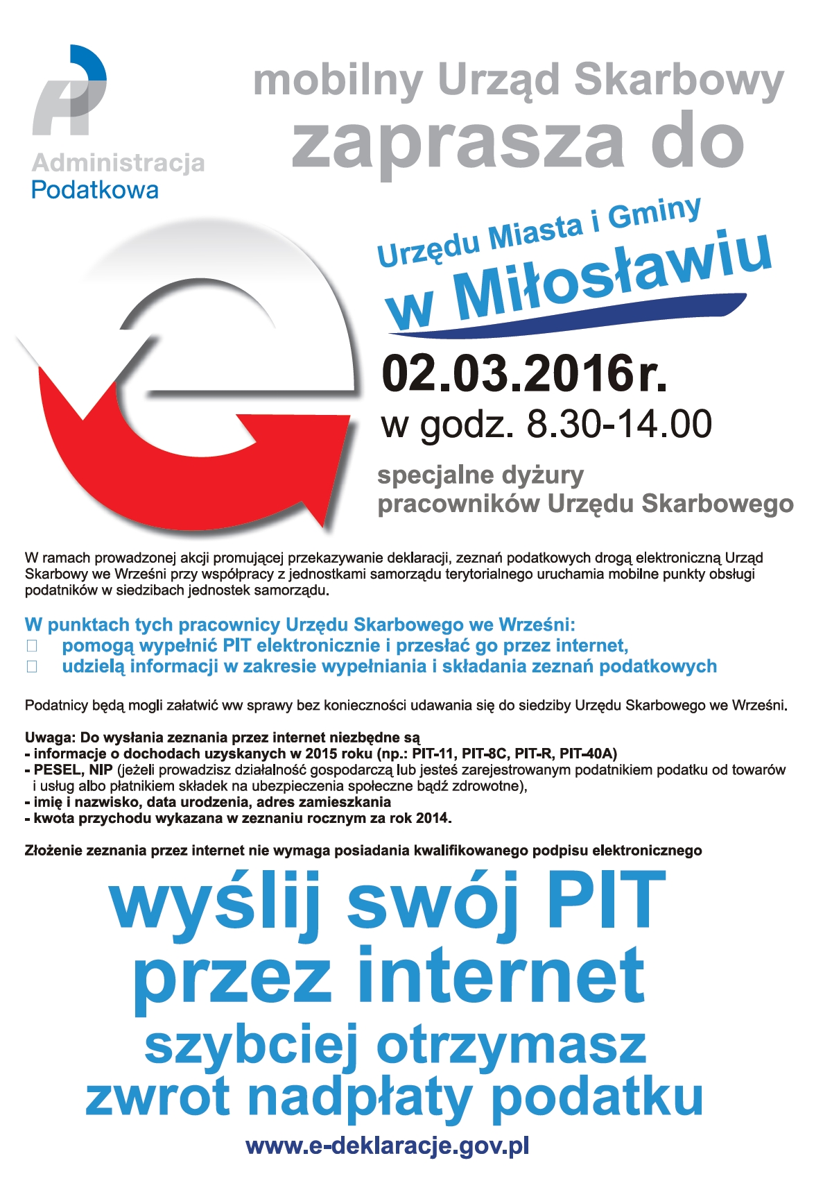 Strona główna > Tablica ogłoszeń > Ogłoszenia / Informacje > Mobilny Urząd Skarbowy